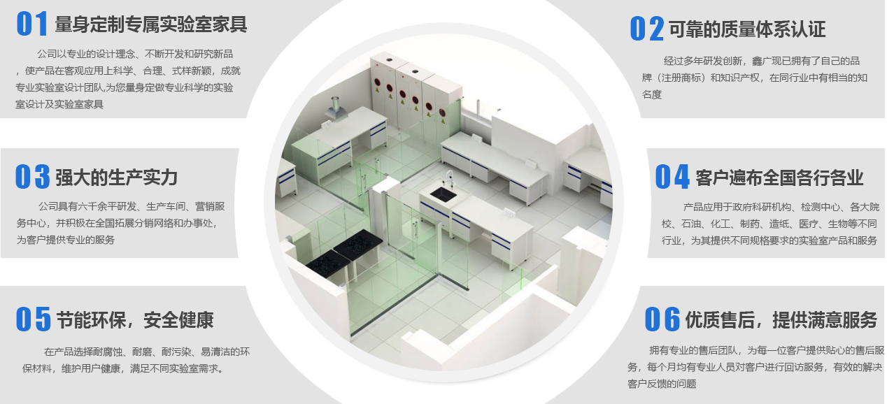 山東鑫廣實(shí)驗(yàn)設(shè)備科技有限公司成立于2007年,是一家位于山東濰坊的實(shí)驗(yàn)室家具工廠。作為實(shí)驗(yàn)室整體解決方案服務(wù)商,我們提供從實(shí)驗(yàn)室規(guī)劃、實(shí)驗(yàn)室設(shè)計(jì)、實(shí)驗(yàn)室裝修、實(shí)驗(yàn)室工程、實(shí)驗(yàn)室家具、實(shí)驗(yàn)室設(shè)備、到實(shí)驗(yàn)室服務(wù)等實(shí)驗(yàn)室建造一站式服務(wù),致力于專業(yè)研發(fā)、設(shè)計(jì)、生產(chǎn)實(shí)驗(yàn)室家具等產(chǎn)品及相關(guān)配套設(shè)備,并提供實(shí)驗(yàn)室建設(shè)全套解決方案的新型高科技企業(yè)。公司下設(shè)研發(fā)加工工廠、營銷服務(wù)中心,并積極在全國拓展分銷網(wǎng)絡(luò)和辦事處,為客戶提供更專業(yè)、優(yōu)良的產(chǎn)品和服務(wù)。